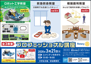 職業奉仕委員会事業|プロフェッショナル講座 < 定員 > 3教室 各先着10名 |